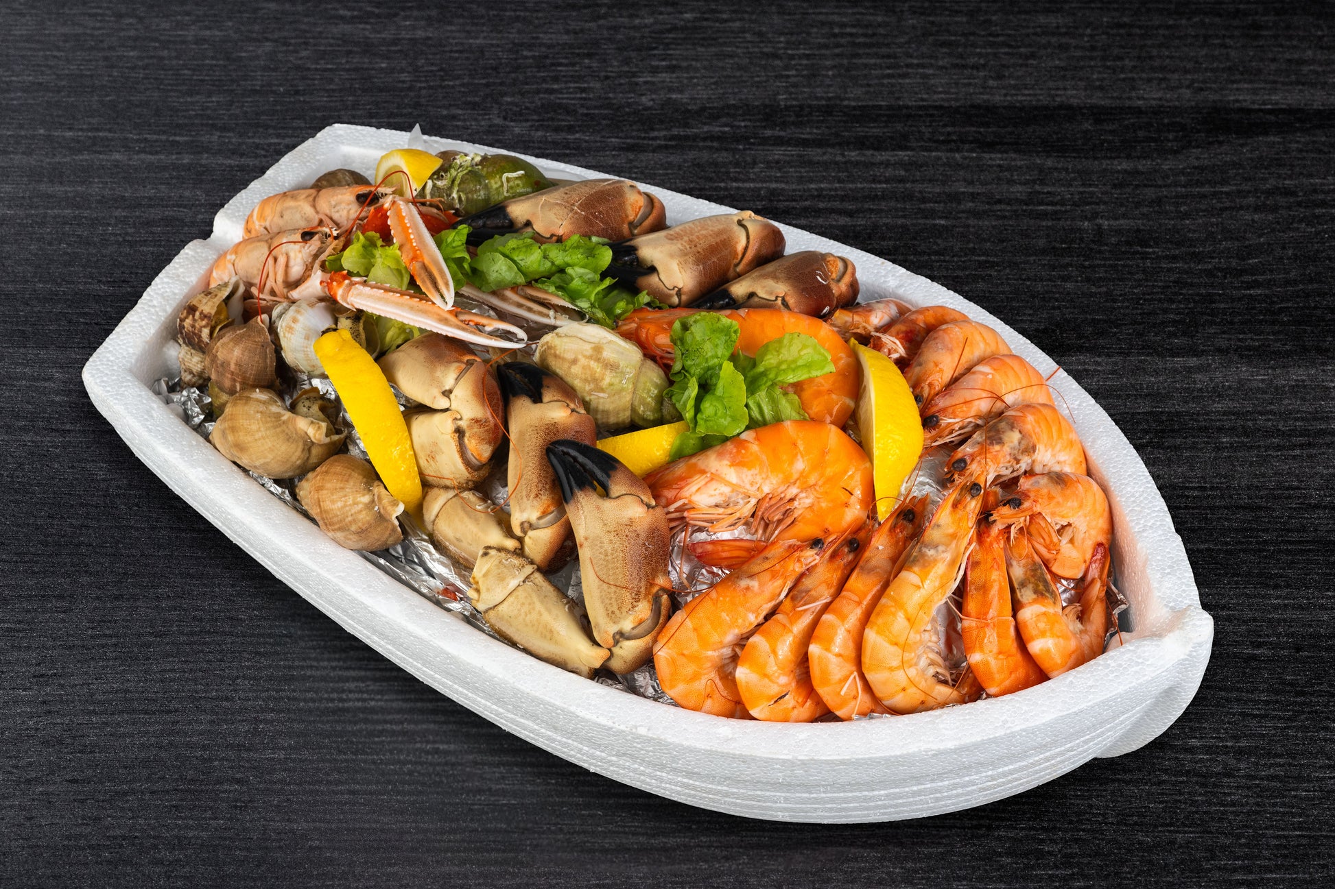 Originie / mode de pêche: Crevettes 20/30 (Equateur / Elevage), Crevettes 40/60 (Equateur / Elevage), crevettes grises (FAO27 / Chalut), Bulots (FAO 27 / Pêche en casier), Pinces de crabe (FAO 27), Amandes (FAO 27), Huîtres n°3 (France / Elevage)