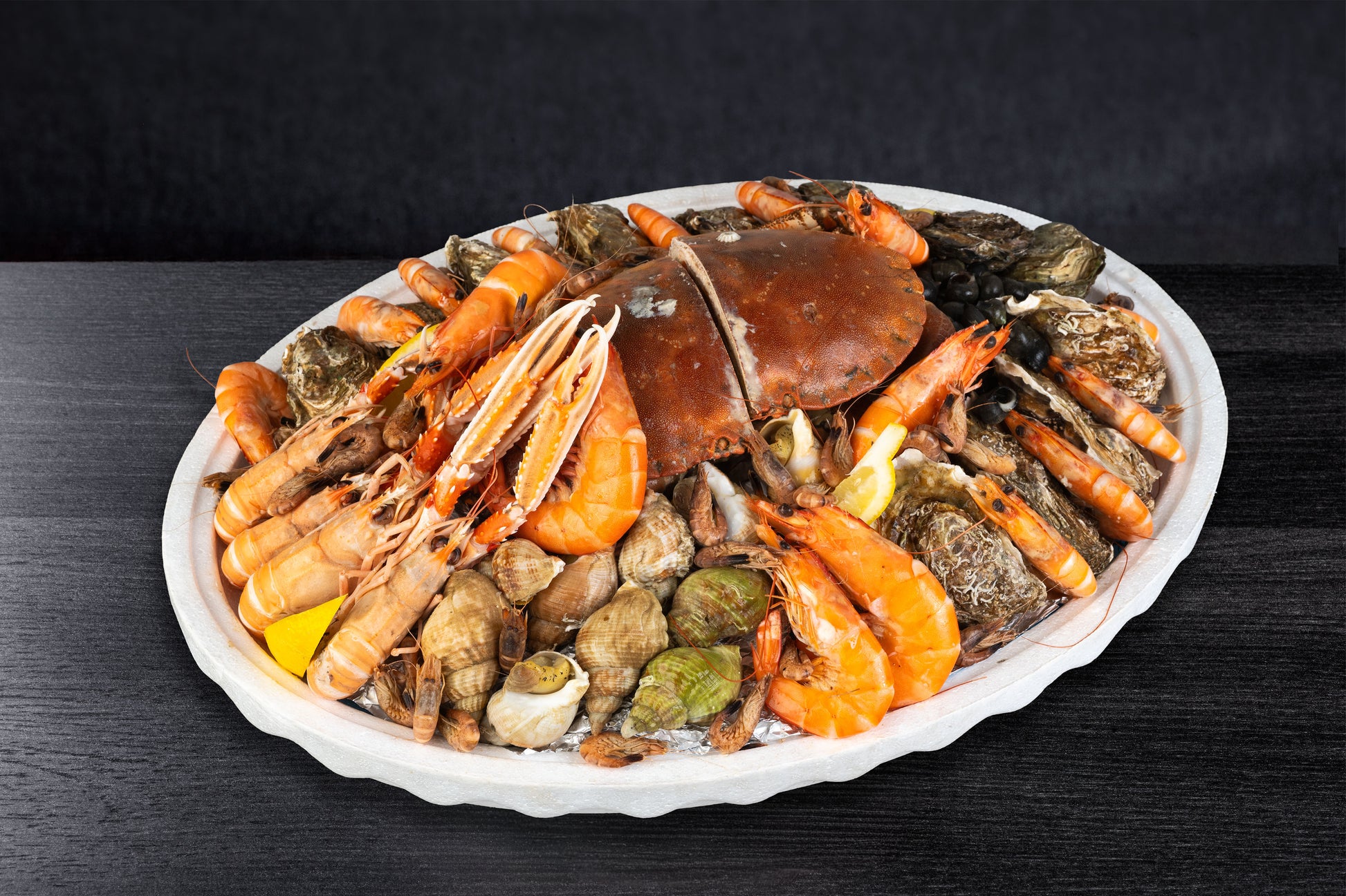 Originie / mode de pêche: Crevettes 20/30 (Equateur / Elevage), Crevettes 40/60 (Equateur / Elevage), crevettes grises (FAO27 / Chalut), Bulots (FAO 27 / Pêche en casier), Pinces de crabe (FAO 27), Amandes (FAO 27), Huîtres n°3 (France / Elevage)